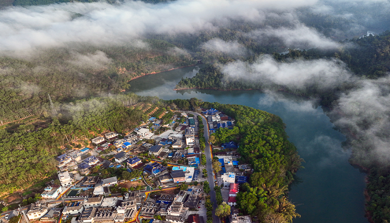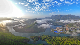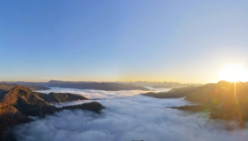 - ယူနန်ပြည်နယ် လူတျန့်ခရိုင်တွင် တလိပ်လိပ်တက်လာသော တိမ်ပင်လယ်မြင်ကွင်းက ရေဆေးမင်ပန်းချီကားပမာ လှပနေ