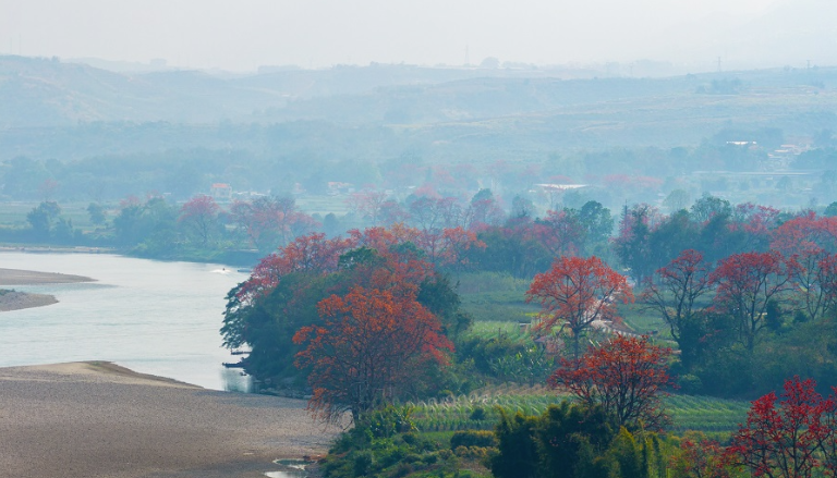 ယူနန်ပြည်နယ် မိုးလားခရိုင်တွင် နန်လားမြစ်၏ ရှုခင်းများသည် ပန်းချီကဲ့သို့ သာယာလှပ