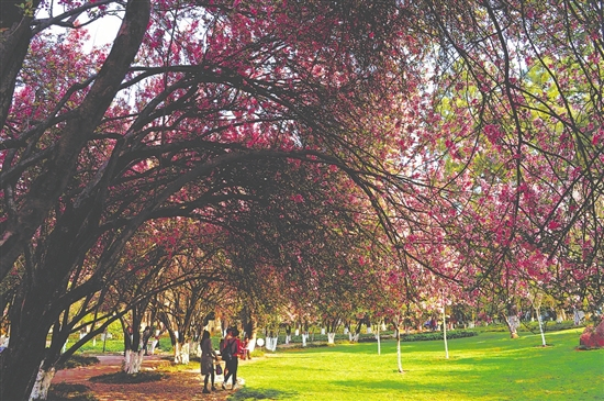 此外,昆明的一些游园、小区、公园也种有大量樱花,时下正是樱花开得最美的时节,它们已经成为昆明城最美的风景之一。(记者左学佳 翟剑)