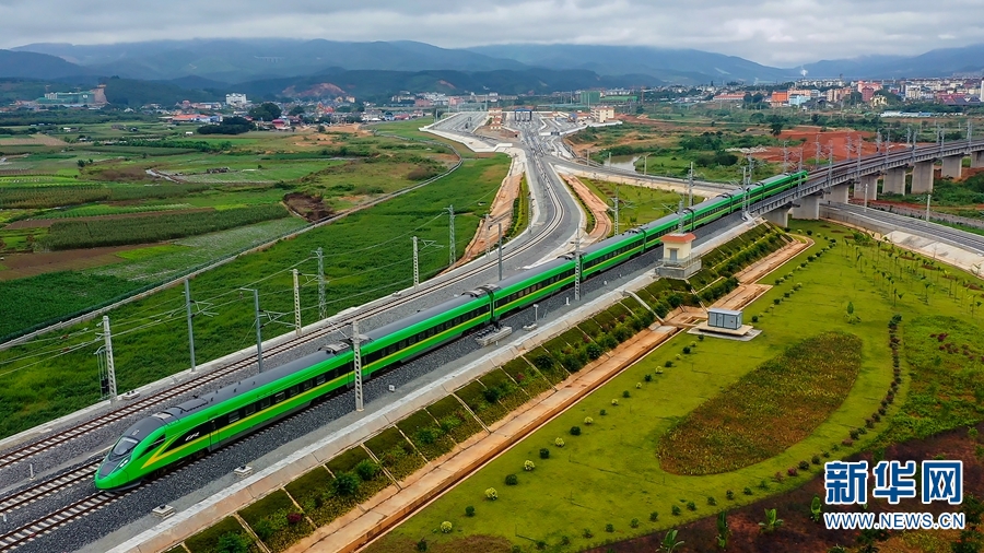 (ေရာင္စံုတိမ္တံတား၊ လဲ့ေရႊရည္) ဒီဇင္ဘာလ ၃ ရက္ေန႔ ညေနပုိင္းတြင္ တရုတ္-လာအုိ ရထားလမ္း လုိင္းတစ္ေလွ်ာက္လံုး သည္ စတင္ေျပးဆြဲခဲ့ပါသည္။ ၁၀၃၅ ကီလုိမီတာရွည္သည့္ ဤရထားလမ္းသည္ ေျမာက္ဘက္တြင္ ယူနန္ျပည္နယ္ ကူမင္းၿမိဳ႕မွစ၍ ေတာင္ဘက္မွယိရွီး၊ ဖူအယ္၊ ဆစ္ေဆာင္ပန္းနားတုိ႔ကုိ ျဖတ္ေက်ာ္၍ ခ်စ္ၾကည္ေရး လုိဏ္ေခါင္းကုိ ျဖတ္ၿပီးေနာက္ လာအုိႏုိင္ငံသုိ႔ ဝင္ေရာက္ၿပီး ေနာက္ဆံုး ဗီယင္က်န္းသို႔ ေရာက္ရွိပါသည္။