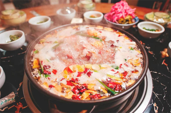 ဖုယွမ် ချဉ်ဖတ်နှင့် ဝက်ခြေထောက် ဟော့ပေါ့ထဲတွင် ယူနန့် မီးရှူးမီးပန်းများ၏ အရသာရှိ