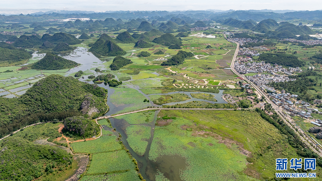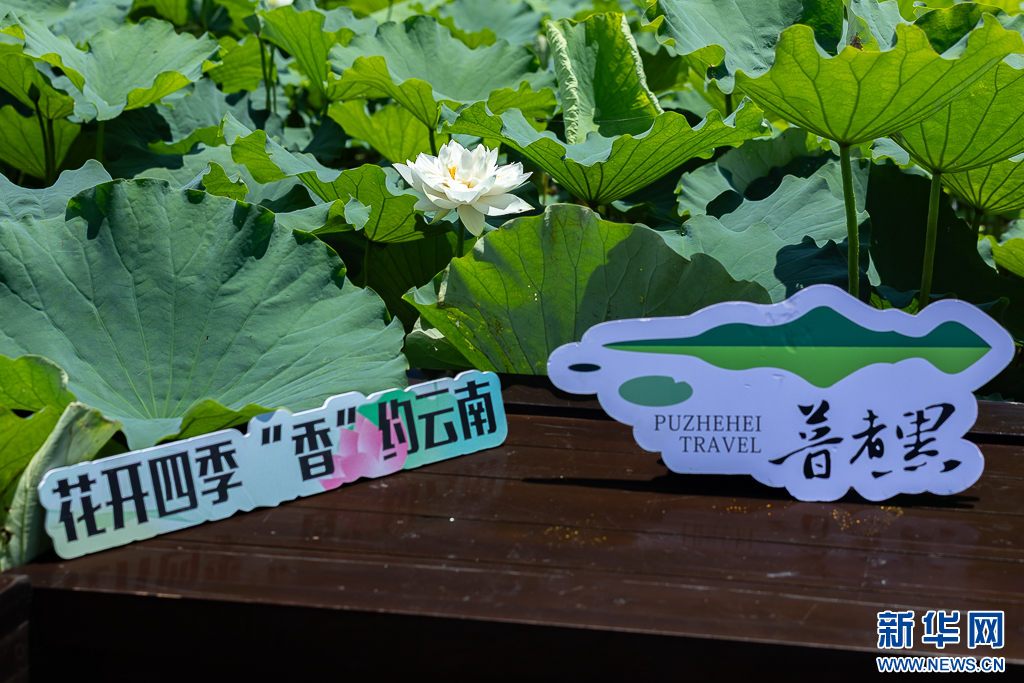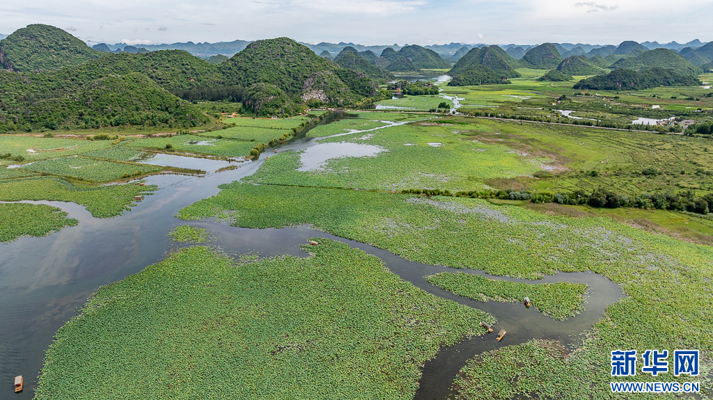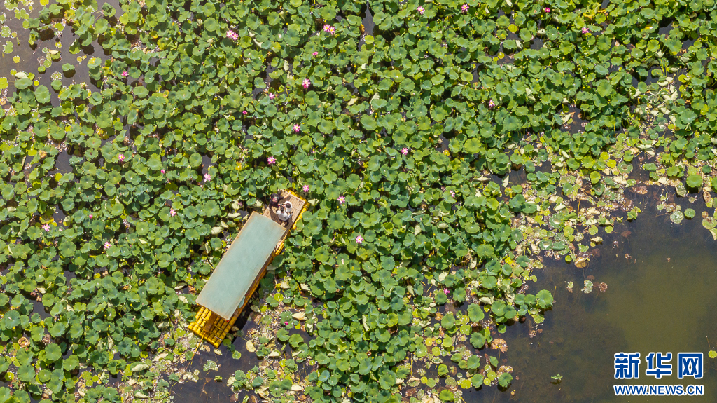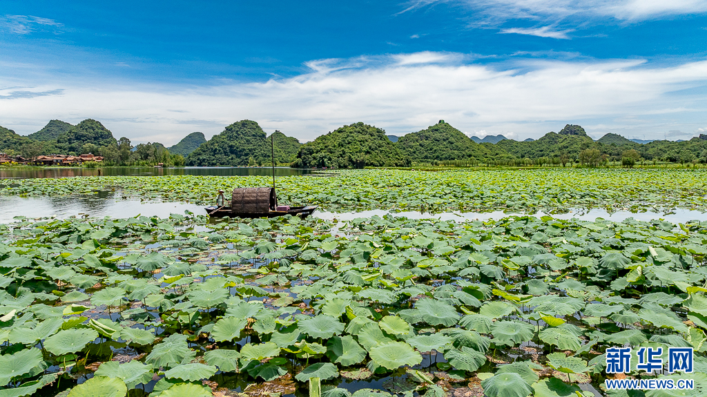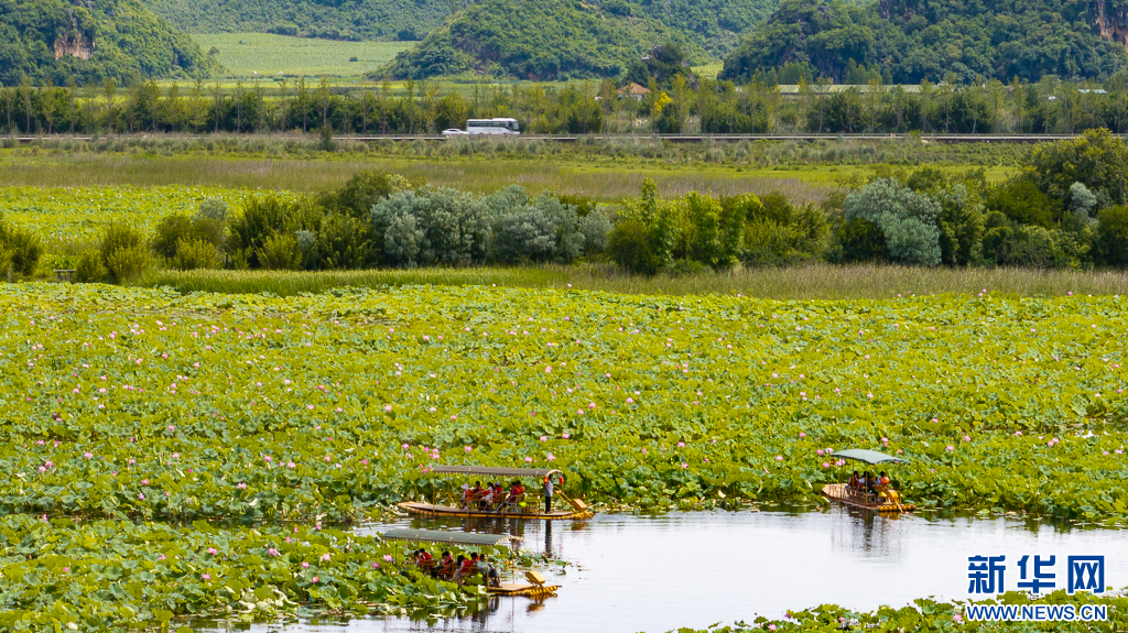 နွေရာသီတွင် ယူနန်ပြည်နယ် ဖူကျယ်ဟေးရှုခင်းသာရပ်ကွက်ရှိ ကြာပန်းများသည် ပွင့်ဖူးနေကြပြီး ပန်းချီကဲ့သို့ လှပ