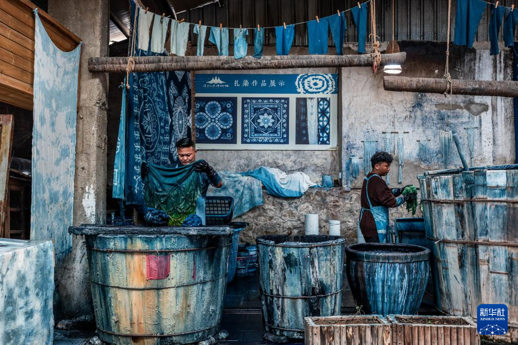 ပိုင်လူမျိုးဆေးဆိုးပန်းရိုက်သည် ပန်လန်ကန်း (Chinese woad) ကို အဓိကဆိုးဆေးအဖြစ် အသုံးပြုပြီး လုပ်ငန်းစဉ်များတွင် ဒီဇီုင်းပုံရေးဆွဲမှု၊ ဒီဇိုင်းပုံနှိပ်မှု၊ ဒီဇိုင်းအလိုက်ကြိုးချည်မှု၊ အရောင်ဆိုးမှု၊ ချွတ်ဆေးဆိုးမှု၊ ကြိုးချည်ထားမှုများဖြည်မှု၊ နေလှန်းမှု စသည်တို့ ပါဝင်သည်။ ၎င်းအနက် ဒီဇိုင်းအလိုက်ကြိုးချည်၍ ဆေးဆိုးခြင်းသည် အဓိကအဆင့်ဖြစ်ပြီး လက်မှုပညာရှင်များက အပ်ကိုင်ကာကြိုးချည်မှုဖြင့် ပိတ်ပေါ်တွင် ဒီဇိုင်းပုံစံအမျိုးမျိုး ကြိုးချည်လိုက်သည်။ ထို့နောက် အပင်ဆိုးဆေးဖြင့် အပြာရောင်အခံ အဖြူရောင်ပန်း ဒီဇိုင်းအမျိုးမျိုးကို အရောင်ဆိုးပုံဖော်လိုက်သည်။