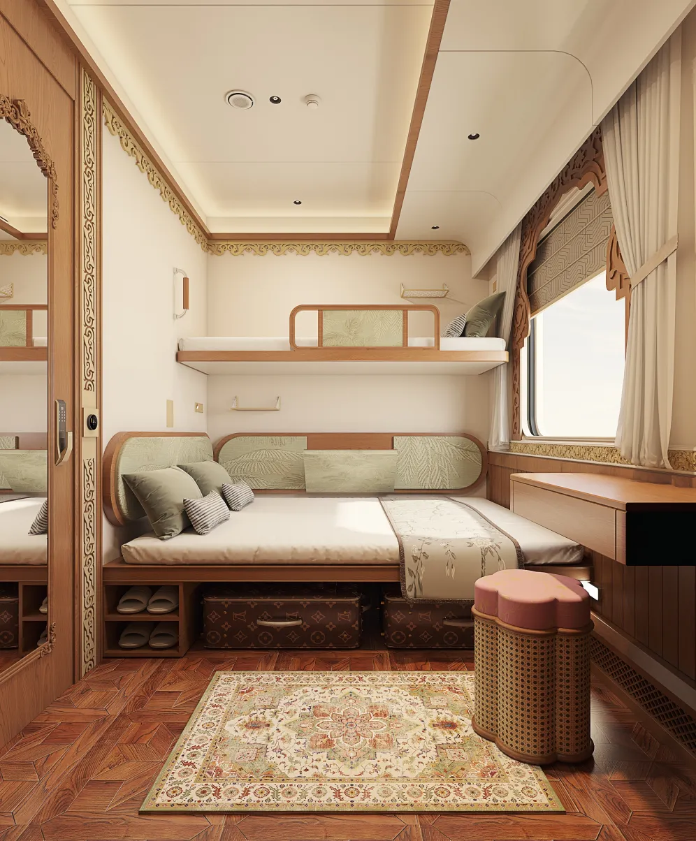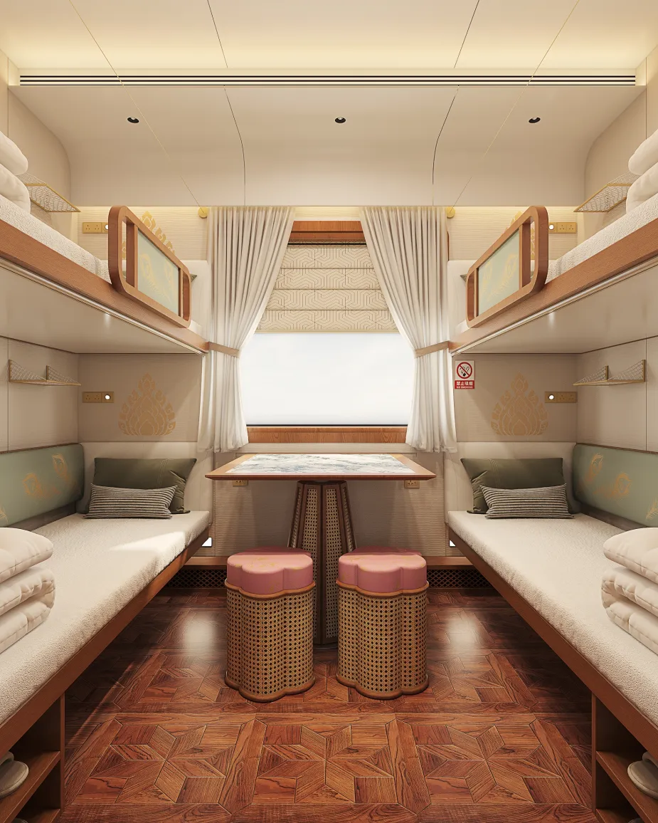 တရုတ်နိုင်ငံတွင် ပြေးဆွဲနေသော ခရီးသွားအထူးရထားအားလုံးထဲတွင် "ကူမင်း"ရထားသည် အကြီးဆုံးသော ခရီးသည်တင်တွဲအခန်း၊ အကြီးဆုံးသော မီးဖိုချောင်တွဲ၊ အကြီးဆုံးသော ထမင်းစားတွဲနှင့် အကြီးဆုံးသော ရှုခင်းကြည့်ပြတင်းပေါက်များကို ရှိ၍ ခရီးသည်များအား ပိုမိုကောင်းမွန်သော အတွေ့အကြုံနှင့် သက်သောင့်သက်သာရှိမှုကို ပေးနိုင်သည်။ ၎င်းတို့အနက် ရိုးရာ အိပ်စင်ပါရထားတွဲ (အိပ်စင် ၄ ခု) တွင် တွဲတစ်တွဲလျှင် အခန်း ၁၀ ခန်းပါရှိသော်လည်း "ကူမင်း"ရထားတွင် အခန်း ၆ ခန်းသာ စီစဉ်ထားသောကြောင့် အခန်းတစ်ခန်း၏ အကျယ်အဝန်းကို ၁၀ စတုရန်းမီတာ ရှိစေပြီး ဘက်စုံသုံးစားပွဲ တစ်ခု ချရန်အတွက် နေရာ အလုံအလောက်ရှိစေပြီး ရီးစဉ်အတွင်း စစ်တုရင်ကစားခြင်းနှင့် ကတ်ကစားခြင်း စသည့် ဖျော်ဖြေရေးလှုပ်ရှားမှုများ အတွက် လုံလောက်သောနေရာ ပေးနိုင်သည်။