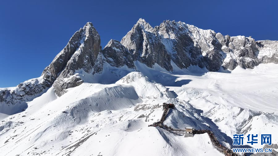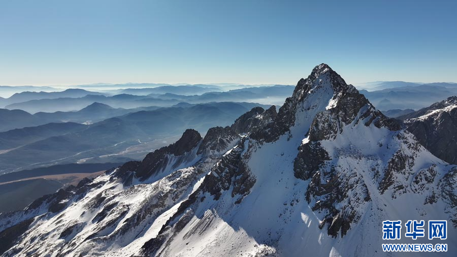 ယူနန်ပြည်နယ် လိကျန်းမြို့ရှိ ယွိလုန်နှင်းတောင်၏ ခန့်ညားထယ်ဝါသော ရှုခင်းများကို လေကြောင်းမှ ရိုက်ကူး