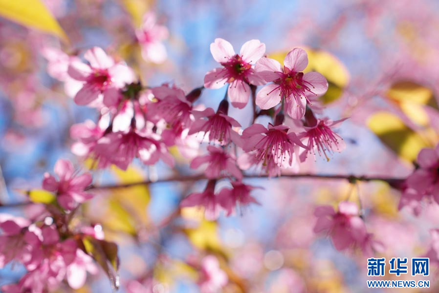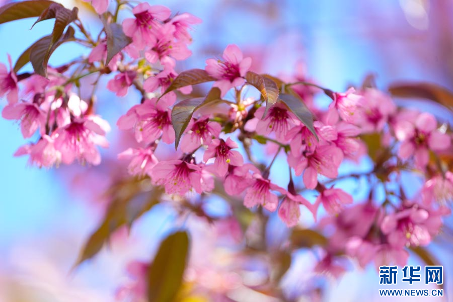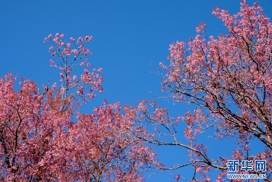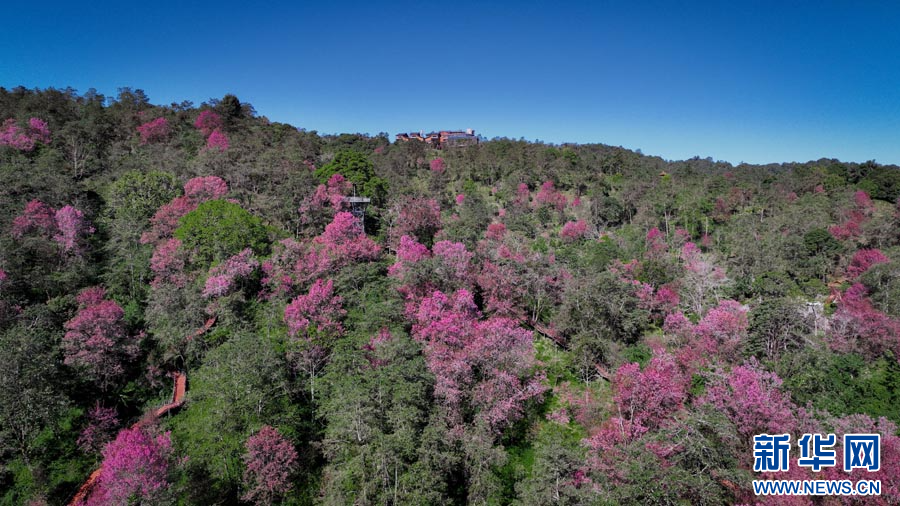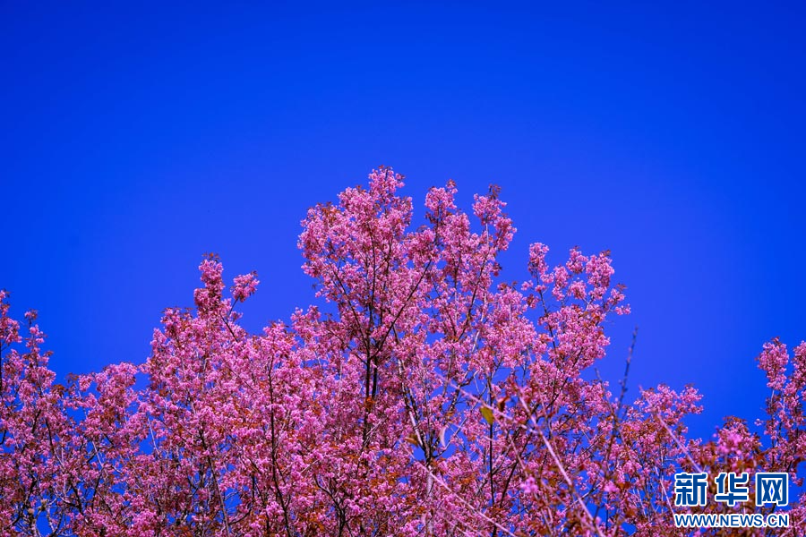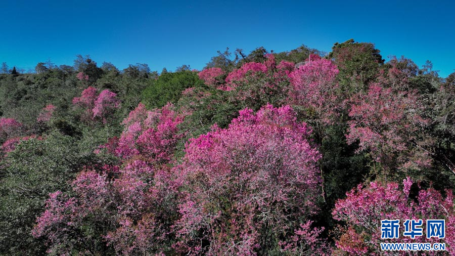 ယူနန်ပြည်နယ် လုံချွမ်ခရိုင်တွင် ရှေးဟောင်းချယ်ရီပန်းများသည် ဆောင်းရာသီကို ပန်းရောင်အဖြစ် ဆေးဆိုးနေ