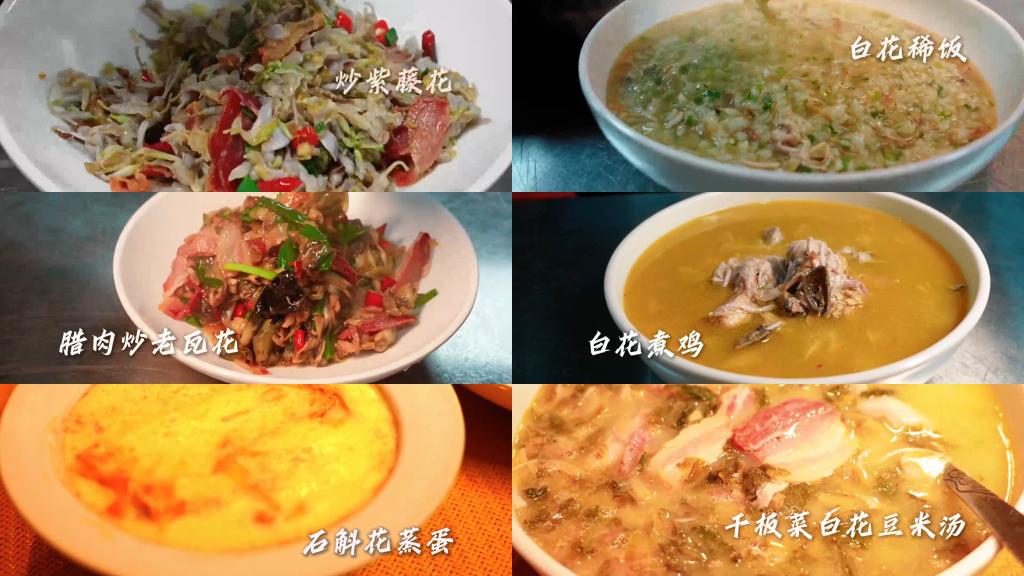 ရှီးမုန်ခရိုင် မုန်စိုးမြို့နယ်ရှိ လယ်သမားအိမ်ဝင်းထဲသို့ ဝင်ရောက်လျှင် ပန်းရနံ့နှင့် အစားအစာရနံ့အကြား လူများသည် များပြားစုံလင်လှသော "ပန်းစားပွဲ"တစ်ခုကို အလုပ်ရှုပ်ရှုပ် ချက်ပြုတ်နေကြသည်ကို တွေ့မြင်နိုင်သည်။ ဝစ်စတီးရီးယားပန်းကြော်၊ Bauhinia variegata var. candida ပန်း ဆန်ပြုတ်၊ ဝက်သားခြောက် Mucuna birdwoodiana ကြော်၊ Bauhinia variegata var. candida ပန်း ကြက်သားပြုတ်၊ Bauhinia variegata var. candida ပန်းဆီကြော်နှင့် Dendrobium nobile ကြက်ဥပေါင်း စသည့် လတ်ဆတ်သော ပန်းများဖြင့် အဓိကထား၍ ချက်ပြုတ်ထားသော ဟင်းလျာများသည် အရောင်အသွေး လှပပြီး အနံ့အရသာကောင်း၍ လူများကို သွားရည် တမြားမြား ယိုကျမလောက်ဖြစ်စေသည်။