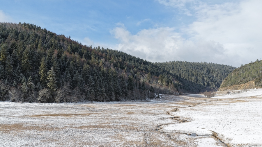 နွေဦးရာသီ ဆီးနှင်းရှုခင်းများသည် ရှန်ဂရီလာ အမျိုးသားဥယျာဉ်(လျာထားရာနေရာ)ကို အလှဆင်