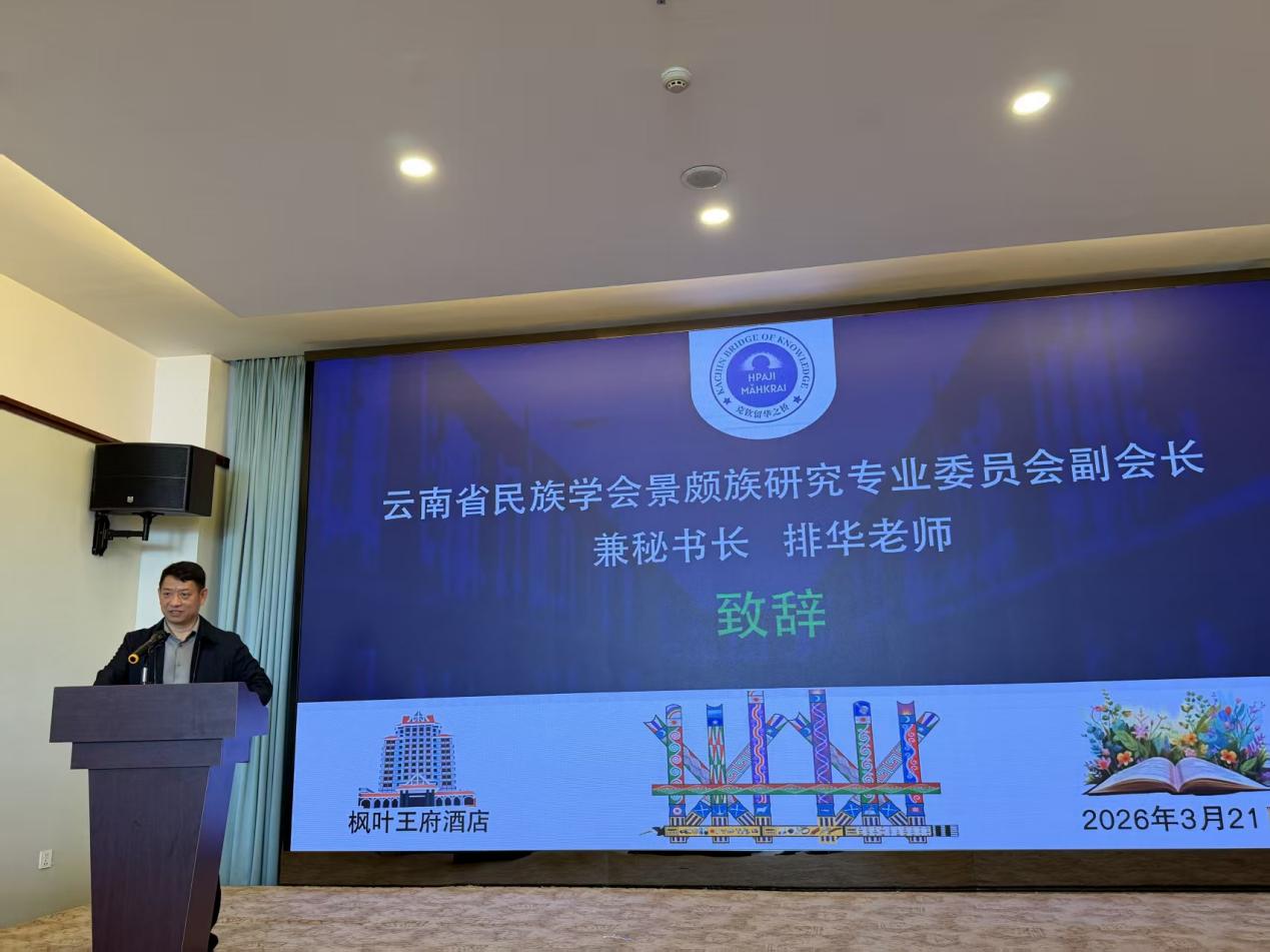 云南省民族学会景颇族研究专业委员会副会长兼秘书长排华致辞。
