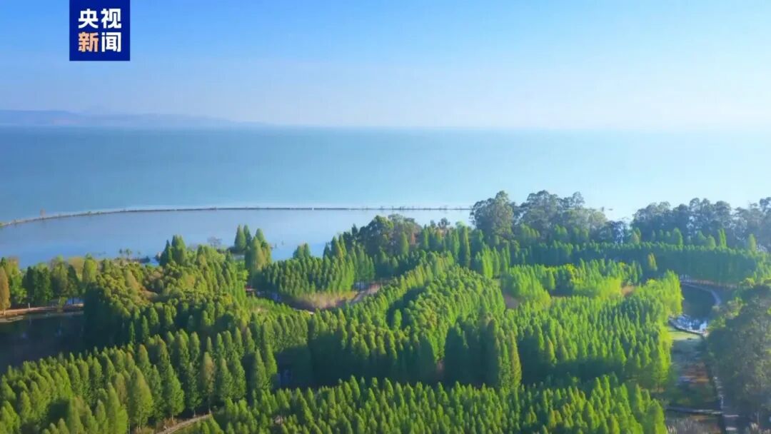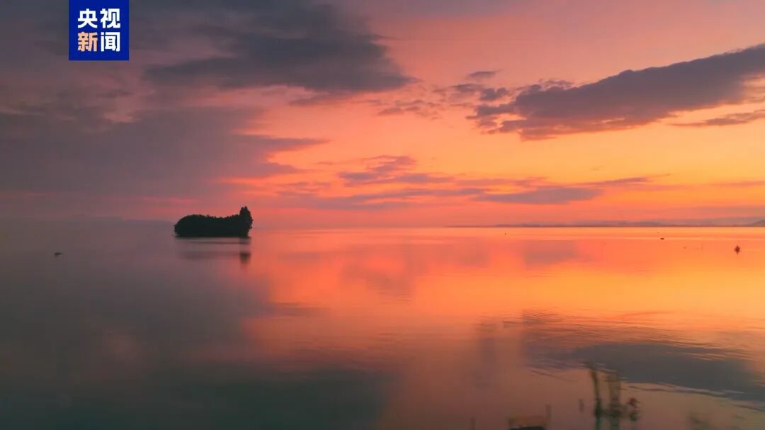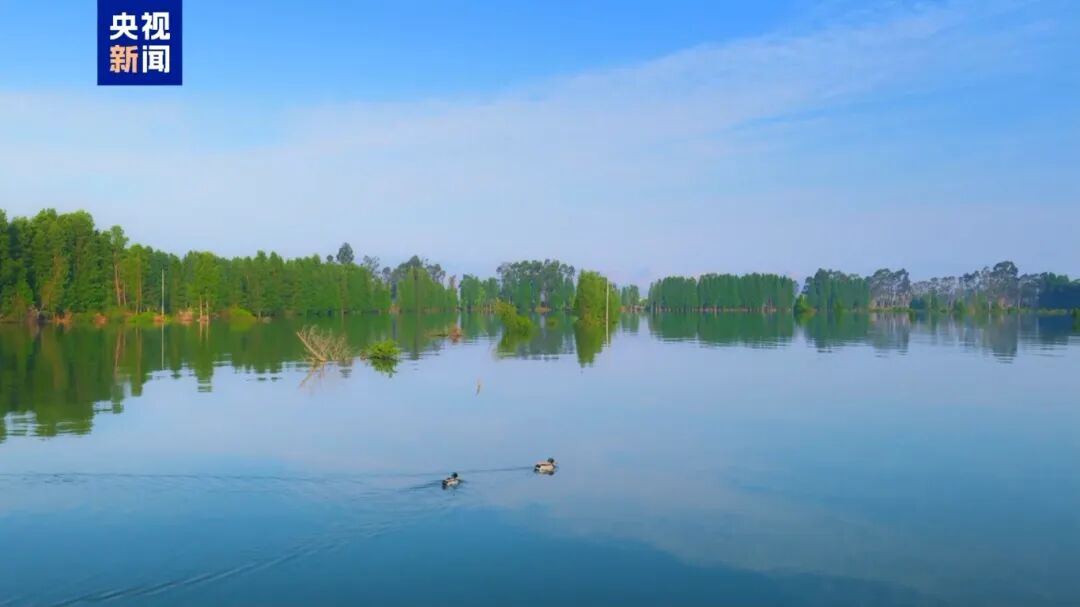 ကြည်လင်သောရေ၊ ကောင်းကင်ပြာနှင့် ရေနေငှက်များ စုဝေးပျံဝဲနေကြသော တျန်းချီရေကန် တောင်ဘက်ကမ်းသို့ နွေဦးရာသီကို ခံစားကြောင်း CCTV က ထုတ်လွှင်ခဲ့