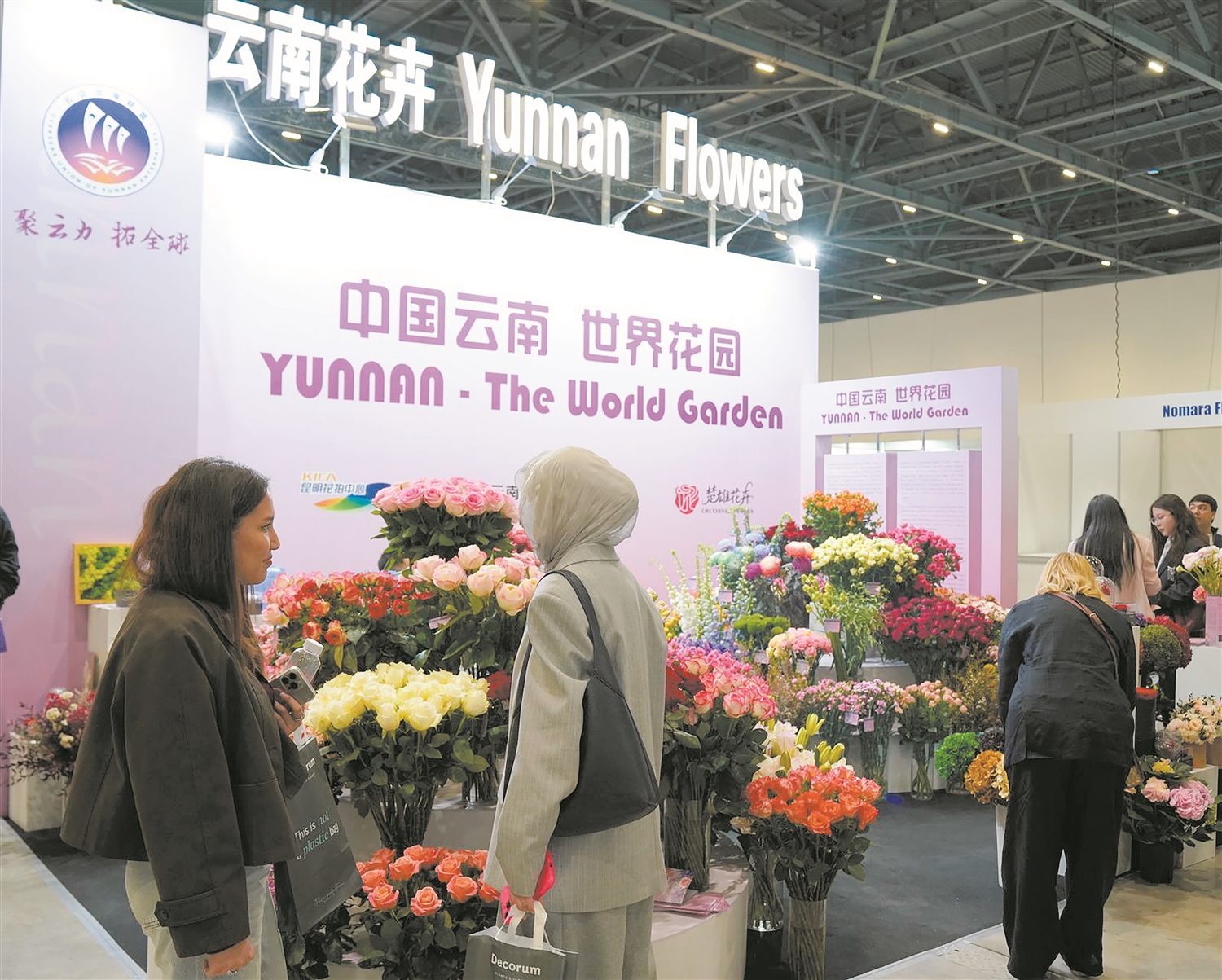 ယူနန်ပြည်နယ် စီးပွားရေးနှင့် ကူးသန်းရောင်းဝယ်ရေးဌာန၏ "ယူနန်လုပ်ငန်းများ နိုင်ငံရပ်ခြားသို့ သွားရောက်လုပ်ကိုင်ခြင်း" မူဝါဒ၏ ပံ့ပိုးမှုဖြင့် ယူနန်ပြည်နယ် ပန်းလုပ်ငန်းသမဂ္ဂသည် ကာဇက်စတန်သို့ သွားရောက်ရန် ပြပွဲပါဝင်သည့် ပန်းလုပ်ငန်း ၇ ခုနှင့် ပြပွဲကြည့်ရှုသည့် ပန်းလုပ်ငန်း ၂ ခု ပါဝင်သော ယူနန် ပန်းလုပ်ငန်းများကိုယ်စားလှယ်အဖွဲ့ကို ဖွဲ့စည်းခဲ့ပြီး ဤအဖွဲ့ဝင်များသည် ပန်းစိုက်ပျိုးခြင်း၊ အချိုးကိုင်ခြင်း၊ ရောင်းဝယ်ခြင်းနှင့် ကုန်သွယ်ရေးပလက်ဖောင်းများ စသည့် စက်မှုလုပ်ငန်းကွင်းဆက် တစ်ခုလုံးကို လွှမ်းခြုံခဲ့သည်။ ကိုယ်စားလှယ်အဖွဲ့သည် "တရုတ် ယူနန်၊ ကမ္ဘာ့ပန်းခြံ" ဟူသော ခေါင်းစဉ်ဖြင့် ယူနန်ပြည်နယ်ရှိ လတ်ဆတ်သောဖြတ်ပန်းပွင့်မျိုး ၈၀ ကျော်၊ Preserved flowers ထုတ်ကုန် အမျိုး ၂၀ ကျော်၊ ပန်းအိုးစိုက် ခြောက်လပန်း အမျိုးများစွာနှင့် ပန်းမှရရှိသော နက်ရှိုင်းစွာအချောကိုင် ထုတ်ကုန်များကို ပြသခဲ့ကာ အလယ်အာရှနိုင်ငံများနှင့် ကမ္ဘာတစ်ဝှမ်းမှ ပြသသူများနှင့် ဝယ်ယူသူများနှင့် နက်ရှိုင်းသော ဖလှယ်မှုများနှင့် ချိတ်ဆက်မှုများကို ဆောင်ရွက်ခဲ့ကြသည်။