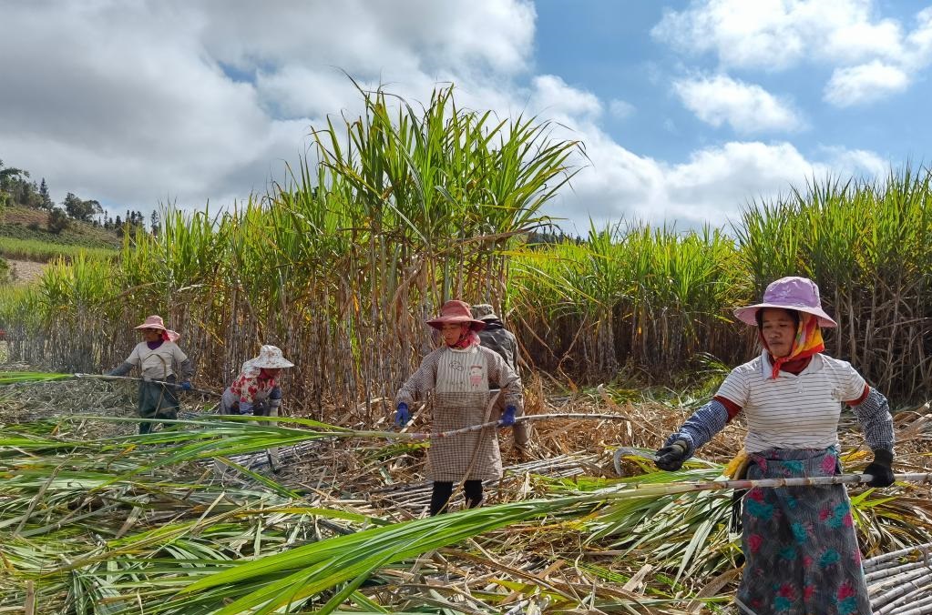 ၾကံပင္ရိတ္သိမ္းခ်ိန္တြင္ လယ္သမားမ်ားသည္ မအားမလပ္ ရိတ္သိမ္းေန