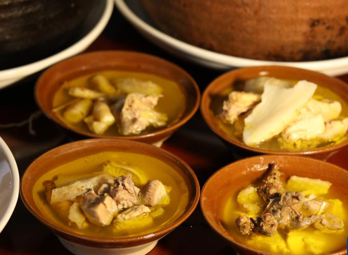 ယူနန်ပြည်နယ် စီတျန့်ခရိုင်ရှိ ဆေးဝါးနှင့် ရပ်ရွာကြက်သားပြုတ်သည် ဆောင်းရာသီတွင် နွေးထွေးသော အစားအစာဖြစ်