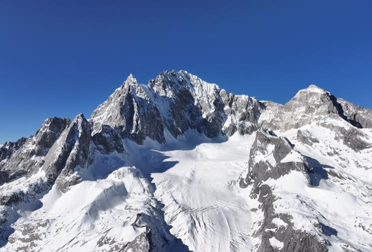 ယူနန်ပြည်နယ် လိကျန်းမြို့ရှိ ယွိလုန်နှင်းတောင်၏ ခန့်ညားထယ်ဝါသော ရှုခင်းများကို လေကြောင်းမှ ရိုက်ကူး