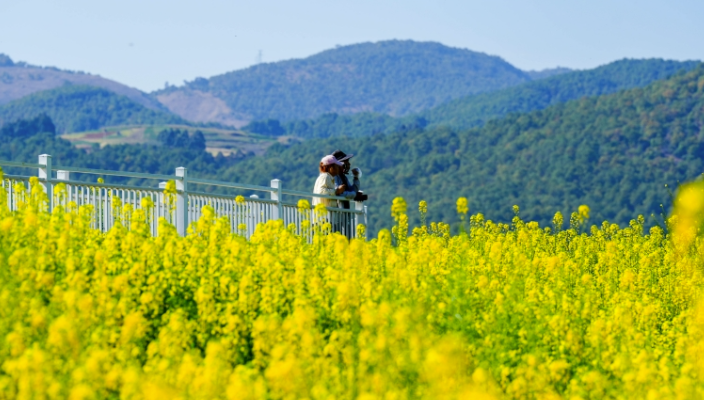 ယူနန်ပြည်နယ် ပေါင်စန်းမြို့တွင် အမိုသောင်းနှင့်ချီသော မုန်ညင်းပန်းခင်းများသည် ခရီးသည်များကို လာရောက် လည်ပတ်ကြည့်ရှုရန် ဆွဲဆောင်နေ