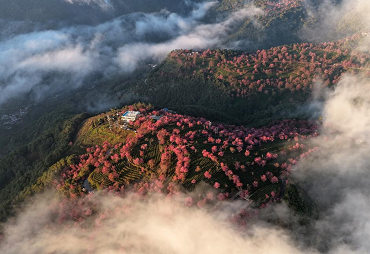 ယူနန်ပြည်နယ် နန်ကျန့်ခရိုင်ရှိ ဝူလျန့်တောင်တွင် ဆောင်းချယ်ရီပန်းများ ပွင့်လန်းလျက်ရှိ