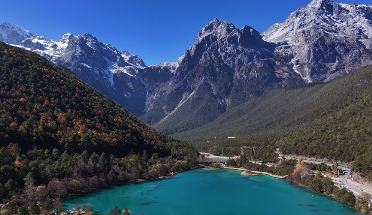 ယူနန်ပြည်နယ် လိကျန်းမြို့ရှိ Blue Moon Valley ရှုခင်းကို လေကြောင်းမှ ရိုက်ကူး၊ ဆီးနှင်းတောင်အောက်ရှိ "အရောင် တဖြည်းဖြည်းပြောင်းလဲသော ကဗျာ"နှင့် ကြုံတွေ့