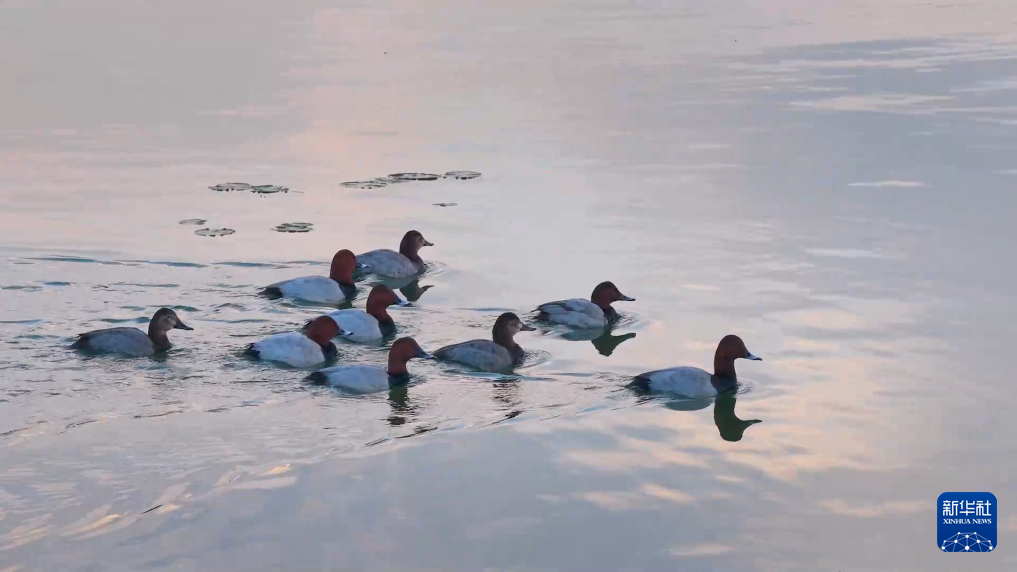 တျန်းချီရေကန် ကမ်းရိုးတန်းတွင် ဆောင်းရာသီ၏ အငွေ့အသက်များသည် ပေါများလှ၍ ဧည့်သည်ငှက်များ ပျံသန်းနေကြ